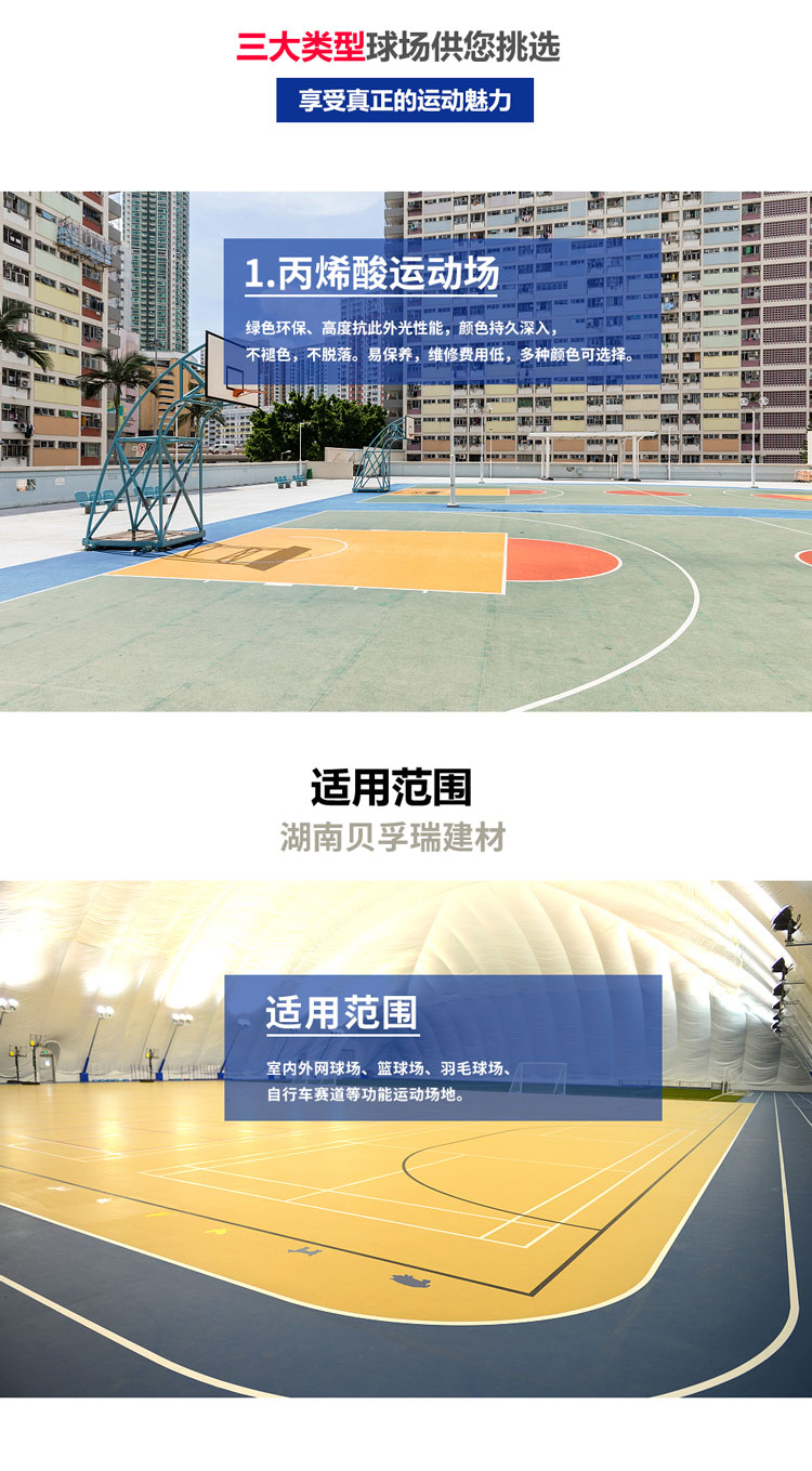 5、技術穩定性:無論是大球還是小球的回彈性、吸震性及摩擦系數能貫穿整個場地系統,保證其技術穩定性。6、理想的綜合功能:適用于室內外籃球場,網球場,排球場,羽毛球場,手球場,休閑場地,健身房等多項運動地面。
